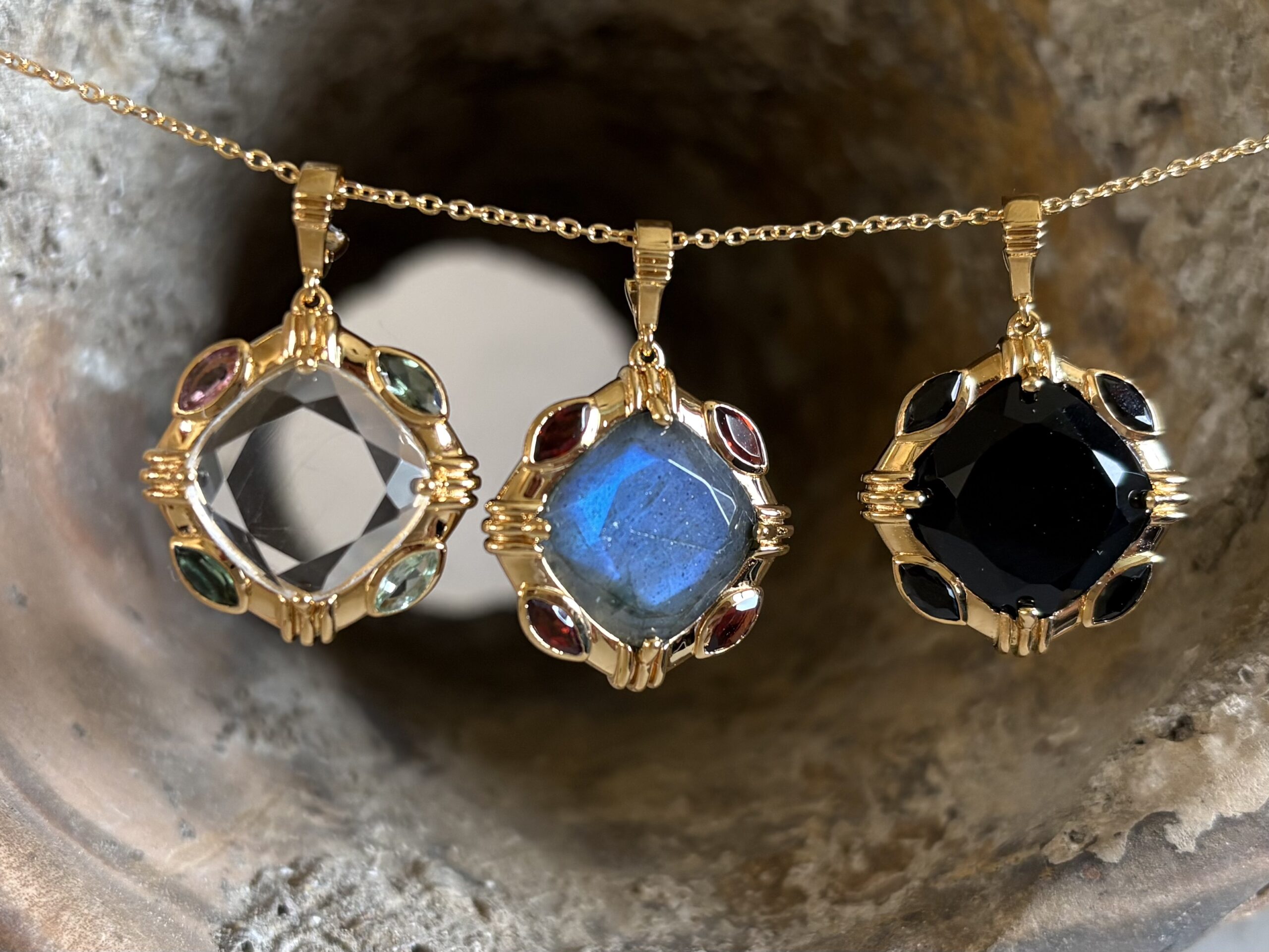 Collier Heishi et pendentif pavé de minis serties